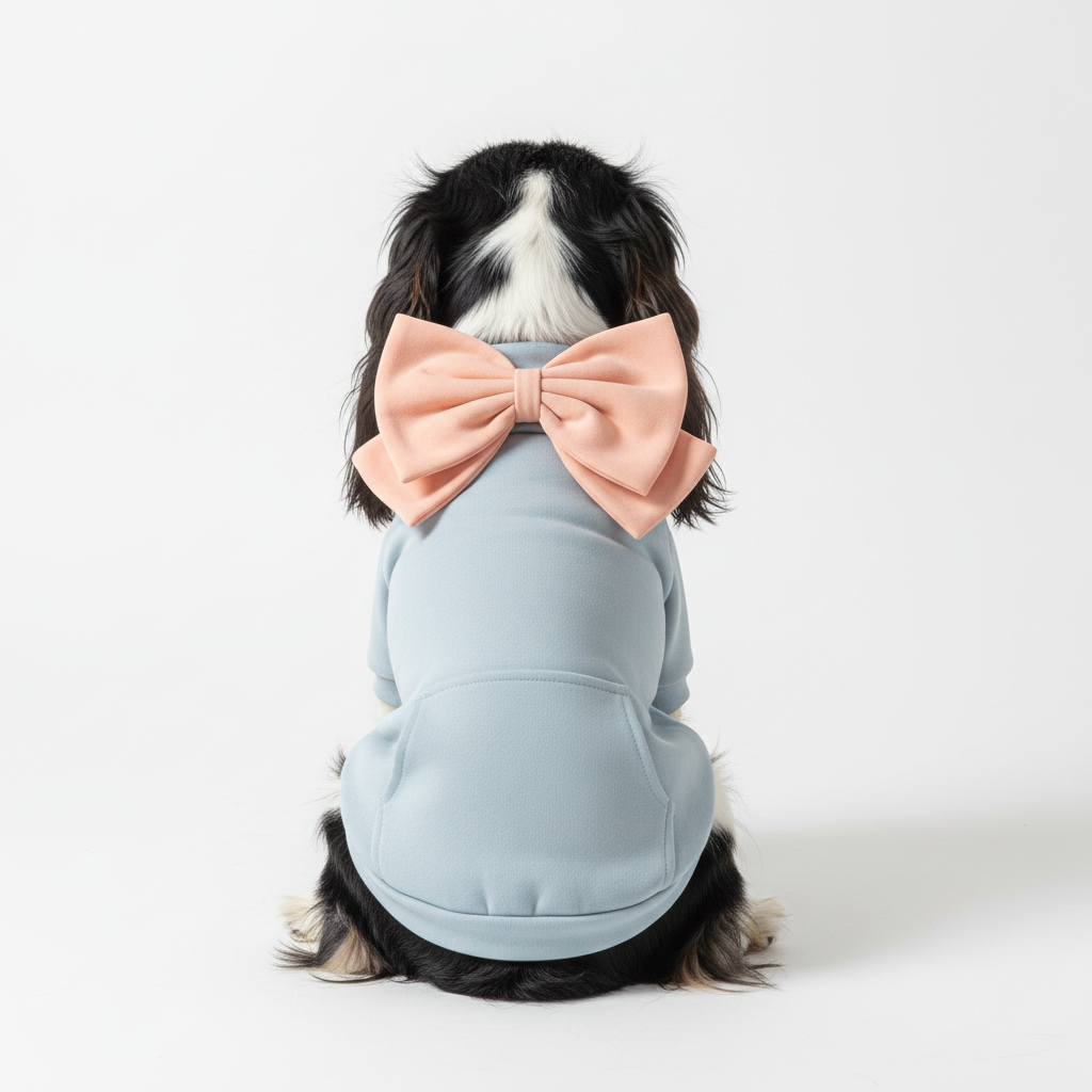 Нежный свитшот в оттенке soft baby-blue с выразительным персиковым бантом — акцентная модель для тех, кто любит элегантные детали. Ткань невероятно мягкая, матовая, приятная к телу и подходит даже для чувствительных собак. Свободная посадка, ровные швы и аккуратный карман сзади создают идеальный баланс комфорта и эстетики. Стильный вариант для повседневных прогулок и фотосъёмок.